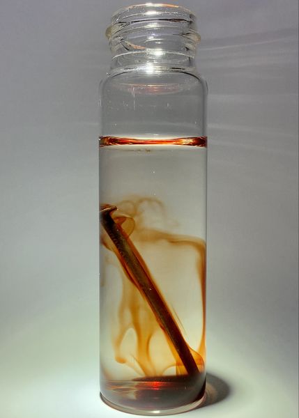 Expérience du clou qui saigne avec du thiocyanate de potassium.