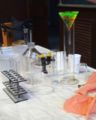 Un coin de paillasse avec le polyacrylamide en cours de réalisation.