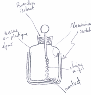 • d'une bouteille en verre épais, servant de matériau diélectrique (isolant),