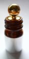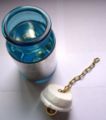 • Pour l'électrode centrale, une poignée de placard en forme de boule bien lisse est l'idéal : on en trouve en laiton ou en inox. L'important est qu'elle soit parfaitement lisse, ce qui évitera des effets de pointe à petite échelle qui feraient fuir les électrons accumulés. Il est monté sur une longue vis servant de tige. Sur cette vis, on attache une chaînette qui sera en contact avec la couche métallique intérieure. On peut aussi bourrer la bouteille de papier aluminium chiffonné, qui assurera le contact entre la couche métallique et la vis. Dans les bouteilles de Leyde d'époque, on utilisait aussi de l'eau salée pour assurer le contact (ce qui est moins pratique d'utilisation et plus lourd).