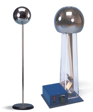 Celui photographié ici peut générer une tension de l'ordre de 400000 V, ce qui est parfait pour réaliser les expériences comme les cheveux hérissés, le carillon électrostatique, la grêle de Volta, etc.