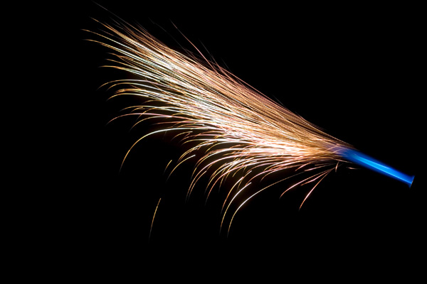 plus ou moins éblouissantes et colorées selon le composé: orange pour le carbone, jaune pour fer, blanches et éblouissantes pour l'aluminium, le magnésium et le zinc (étincelles bleutés). - On peut ressentir une certaine chaleur à proximité des étincelles lors de la combustion.