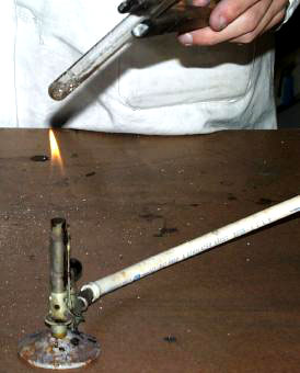 Chauffage du tube à essai sur un bec Bunsen.