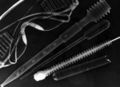 • Disposer des objets divers sur le papier, à votre guise : clefs, objets transparents, vis, branches ou feuilles d'arbustes, d'arbres, plumes, etc. On peut aussi poser d'anciens négatifs d'appareil photographique argentique (cela donnera une planche-contact).